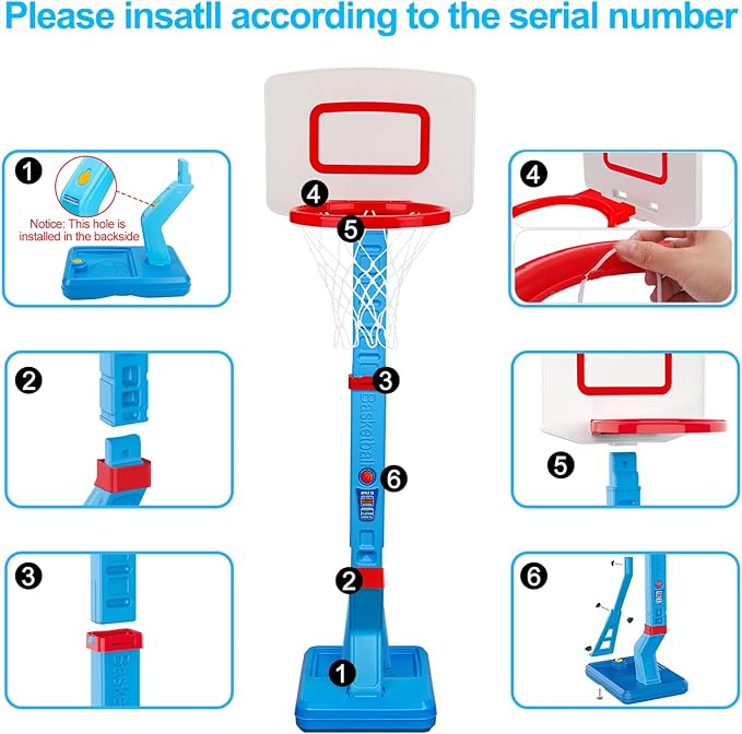 Toddler Basketball Hoop Indoor Mini Adjustable Basketball Goal with Ball Pump Outdoor Toys Backyard Game Outside Pool Basketball Toys for 1 2 3 4 Year Old Boy Girl Kid Toy Age 2-4 4-8 Birthday Gift