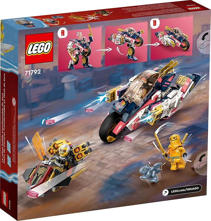 LEGO NINJAGO Sora’s Transforming Mech Bike Racer Building Toys for Kids, Featuring a Mech Ninja Bike Racer, a Baby Dragon and 3 Minifigures, Gift for Kids Aged 8+, 71792