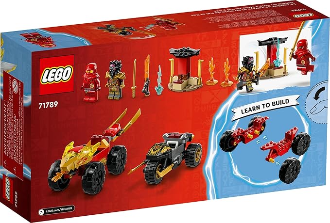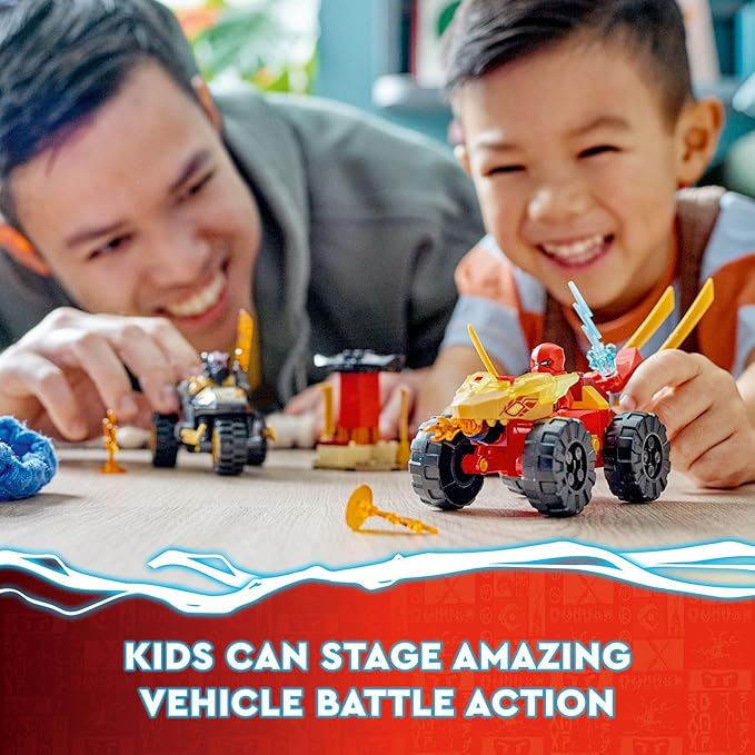 LEGO NINJAGO Kai and Ras’ Car and Bike Battle 71789 Beginner Building Toy Set, Features a Ninja Car Toy and Bike Plus 2 Minifigures, Birthday Gift for Toddlers and Kids Who are Little Ninja Fans