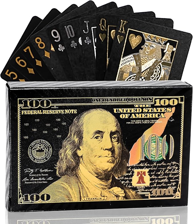 Magic Kiss Waterproof Gold and Silver Foil Poker Playing Cards, Deck of Plastic Playing Cards Gift (Black B 1 Deck)