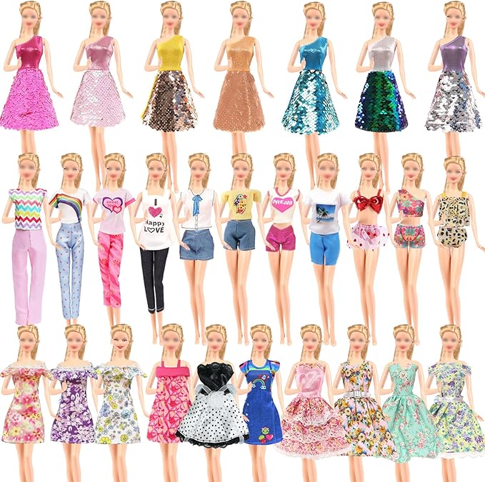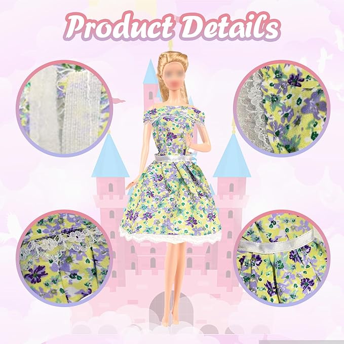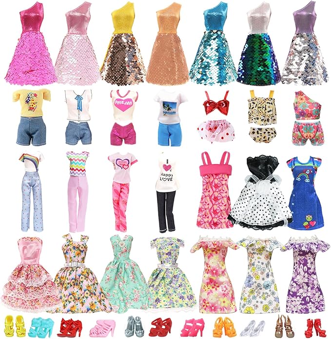 25 PCS Doll Clothes for 11.5 inch Girl Doll Including 3 Flower Dress 2 Seqien Dress 3 Casual Wear 2 Fashion Dress 2 Swimwear 10 Pair of Shoes Birthday for Girls Style in Random