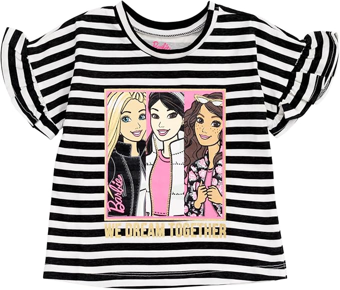 About This Jersey T-Shirt: 100% Cotton; Mesh Tutu: 100% Polyester Imported Officially licensed Barbie toddler girls short sleeve graphic tee... Read more