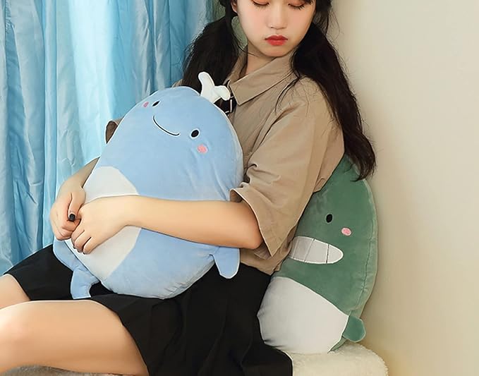 Soft Flat Whale Plush Hugging Pillow Cute Blue Whale Stuffed Animal Plushies Toys Kids Anime Cushion for Birthday, Valentine's Day, Christmas...16.5 Inch