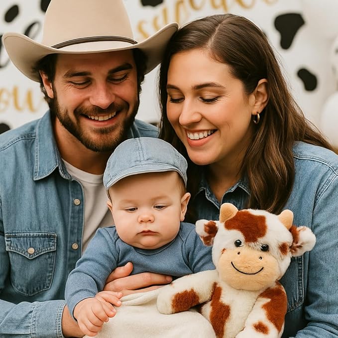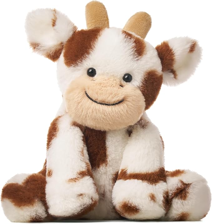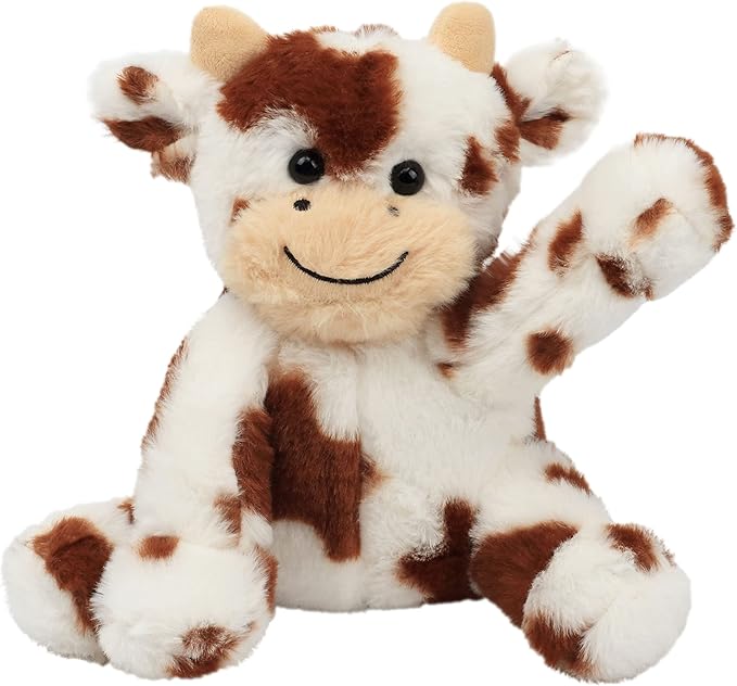 Hopearl Adorable Plush Cow Toy Floppy Dairy Cattle Soft Stuffed Animal Cute Birthday Gifts for Boys Girls Kids Toddlers, Dark Brown, 9''