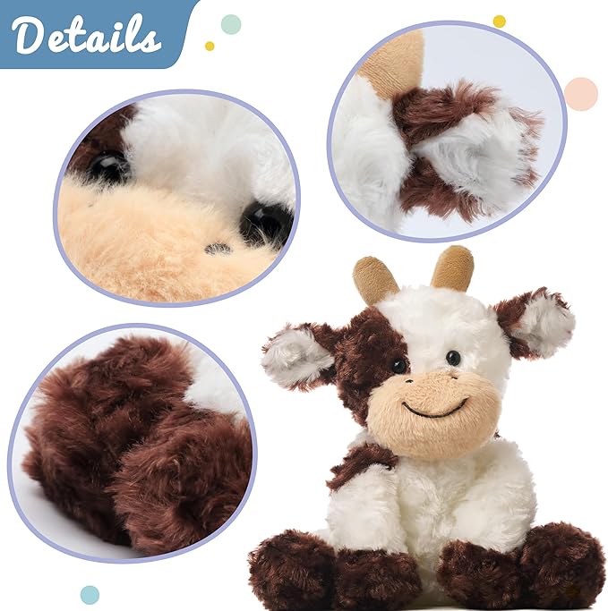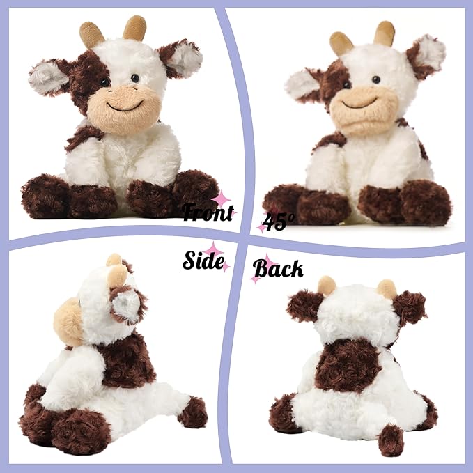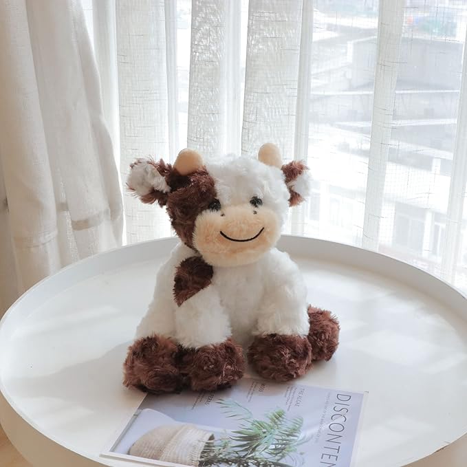 Hopearl Adorable Plush Cow Toy Floppy Dairy Cattle Soft Stuffed Animal Cute Birthday Gifts for Boys Girls Kids Toddlers, Brown, 9''