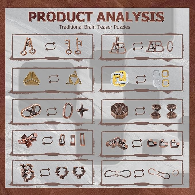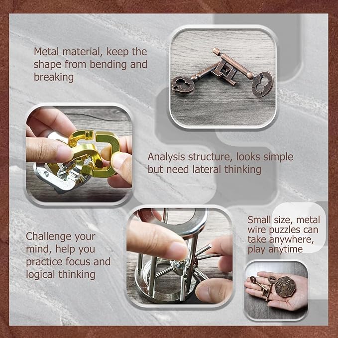 15 Pcs Brain Teaser Metal Wire Puzzles, Mind IQ Test Unlock Toy, Interlock Challenge Puzzle Game Educational Toy Gift for Boys Girls Teens Adults, #A