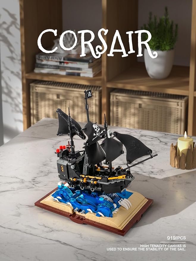 Black Pearl Ship Grimoire Book Building Blocks Toy Set,Gift for Adults and Kids (919pcs)