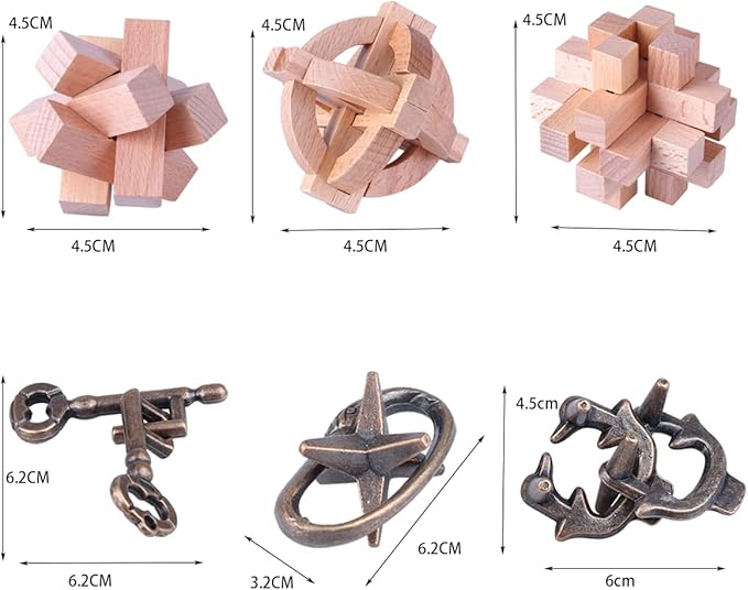 About This Metal and Wood Brain Teaser 6 Set for Kids and Adults - All the coils and blocks are... Read more