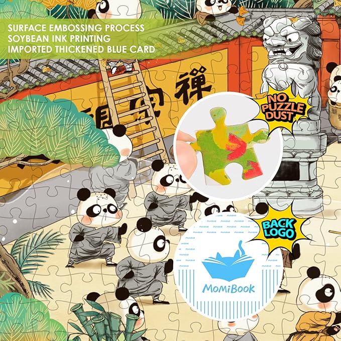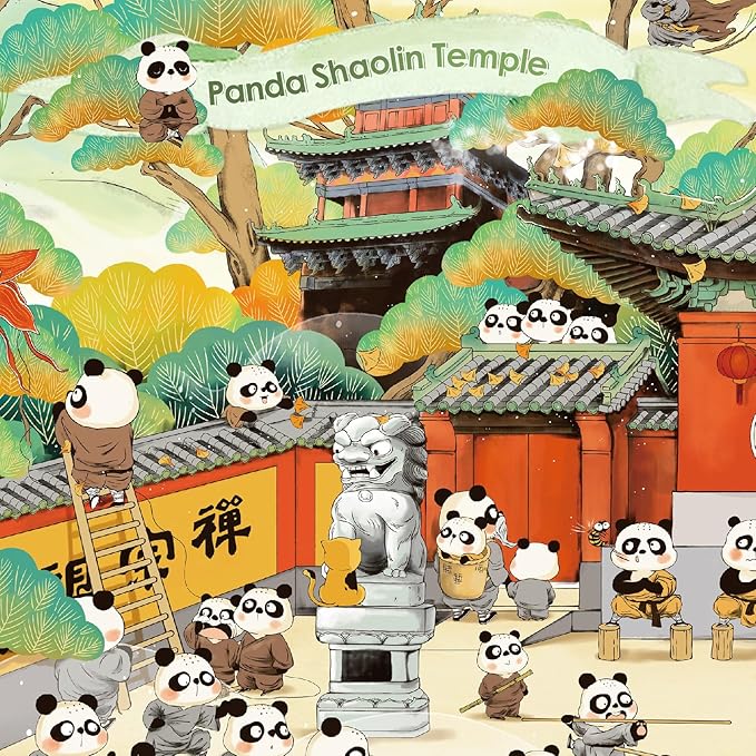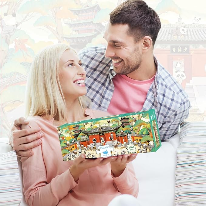MOMIBOOK Puzzles for Adults 1000 Pieces Jigsaw Puzzles of Panda Shaolin Temple, Painting Image Chinese Difficult Challenging Hard Impossible Puzzle Unique Funny Party Christmas Birthday Gifts