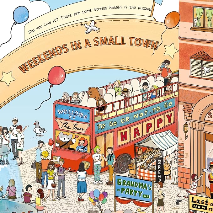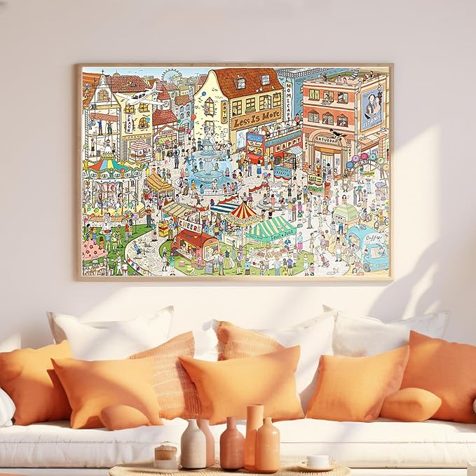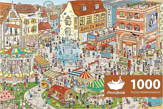 MOMIBOOK Puzzles for Adults 1000 Pieces Jigsaw Puzzles of Weekends in a Small Town, Painting Image Difficult Challenging Hard Impossible Puzzle Unique Funny Party Christmas Birthday Gifts