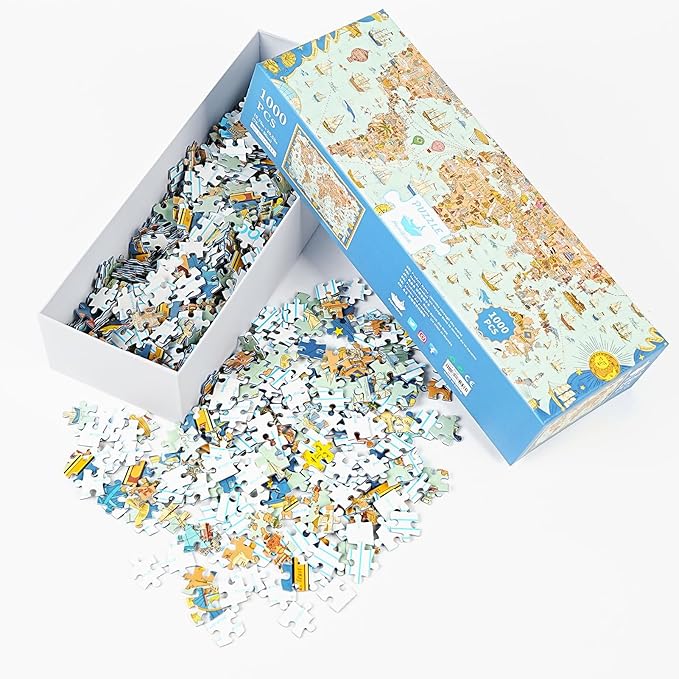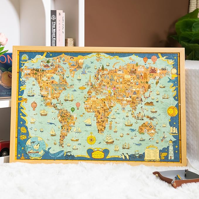 MOMIBOOK Puzzles for Adults 1000 Pieces Jigsaw Puzzles of Journey Through The World, Painting Image World Map Difficult Challenging Impossible Puzzle Unique Funny Party Christmas Birthday Gifts