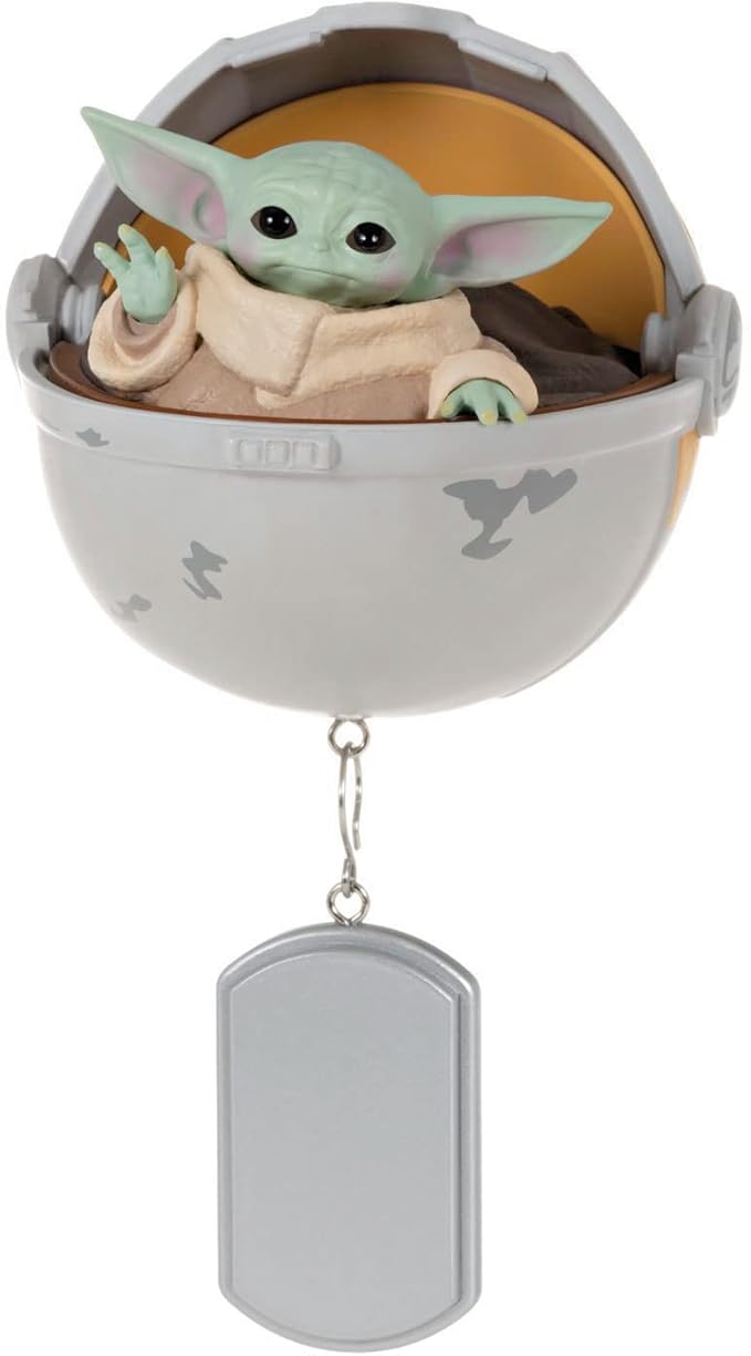 Hallmark Keepsake Personalized Christmas Ornament 2023, Star Wars: The Mandalorian Grogu in Hovering Pram, Gift for Star Wars Fans