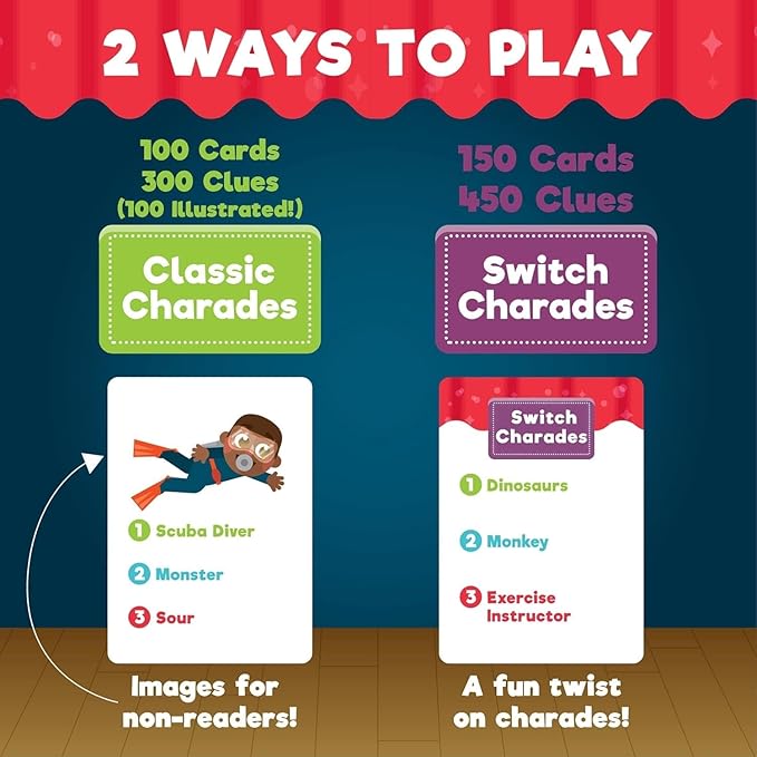 About This Includes two exciting game modes: Classic Charades and Switch Charades. Features 750 charades ideas across 250 cards, providing... Read more