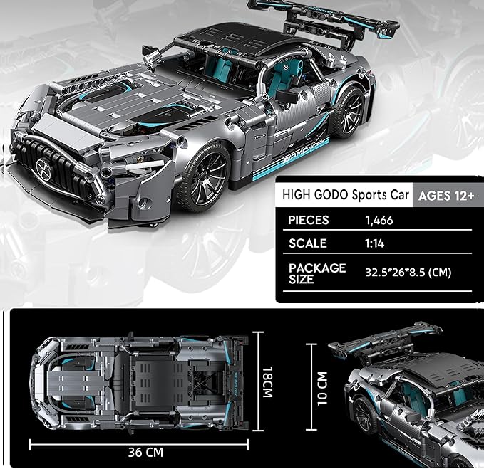 HIGH GODO Racing Car Building Kit for Adults,1:14 MOC Super Sports Car Building Blocks Construction Sets, Buildable Supercar Model for Kids Gift Giving or Collection(1466pcs)