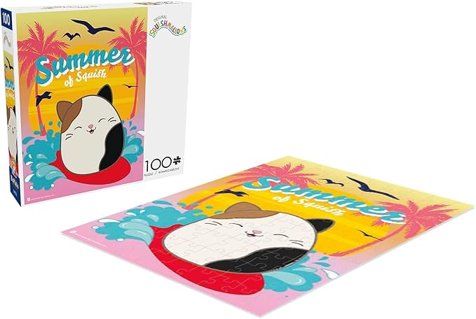Buffalo Games - Squishmallow - Squishmallow Summer - 100 Piece Jigsaw Puzzle for Families -Challenging Puzzle Perfect for Game Nights - Finished Size is 15.00 x 11.00