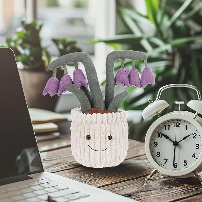 Apricot Lamb Soft Flores Convallariae Plant Plush Toy, Stuffed Purple Flower Pot, Kawaii Plushie for Kids