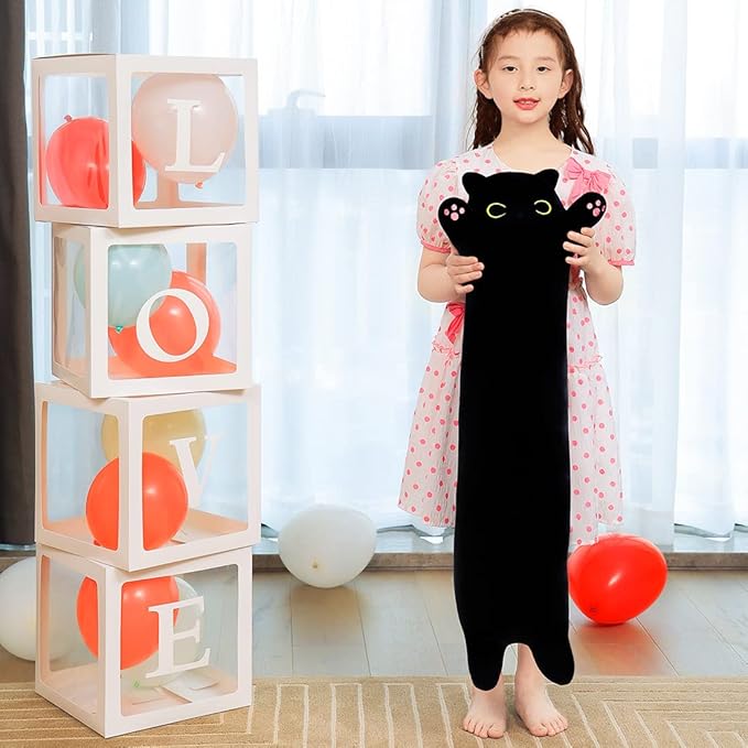 Black Cat Plush Toy Pillow - Cute Cat Gift for Kids (Black, 90cm/35.4in)
