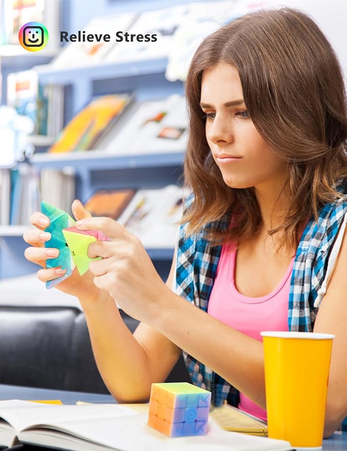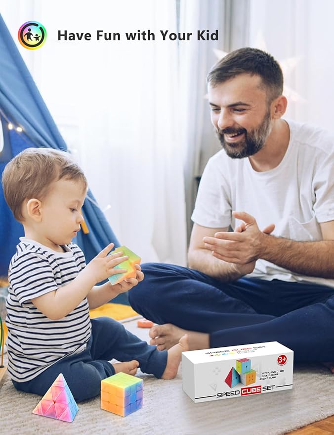 Vdealen Speed Cube Set, 2x2x2 3x3x3 Pyramid Magic Cube Set, Puzzle Cube Toys Birthday Party Christmas Stocking Stuffers Gift for Kids Teens Adults(Jelly Stickerless)