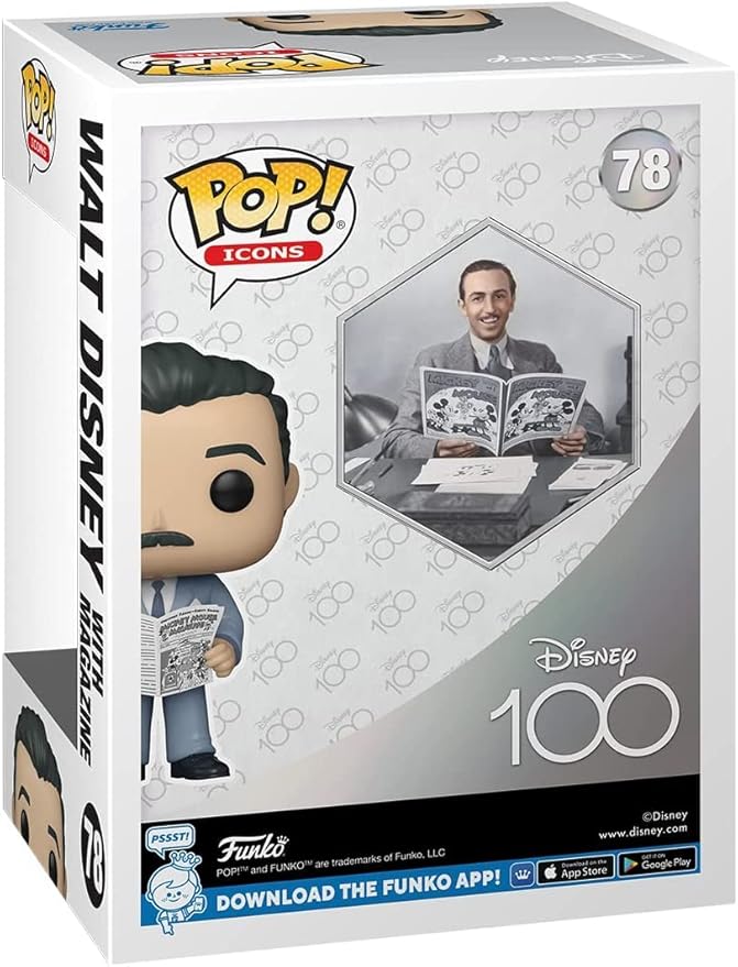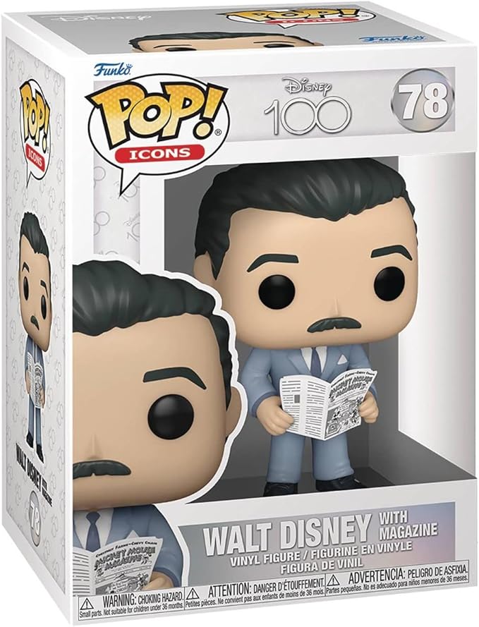 POP Icons: Disney 100 - Walt Disney with Magazine Funko Vinyl Figure (Bundled with Compatible Box Protector Case), Multicolor, 3.75 inches