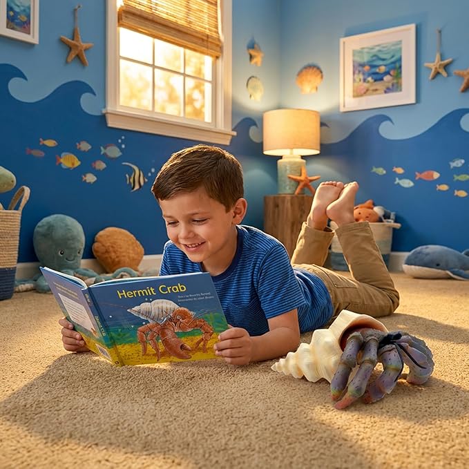 Gemini&Genius Sea Animal Hermit Crab Action Figure Toy for Kids, Soft Rubber Realistic Ocean Crab Educational and Role Play Toys for Kids and Collectors, Great Swimming and Bath Toys (Hermit Crab)