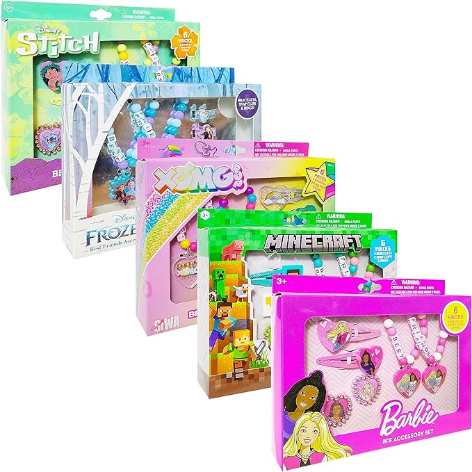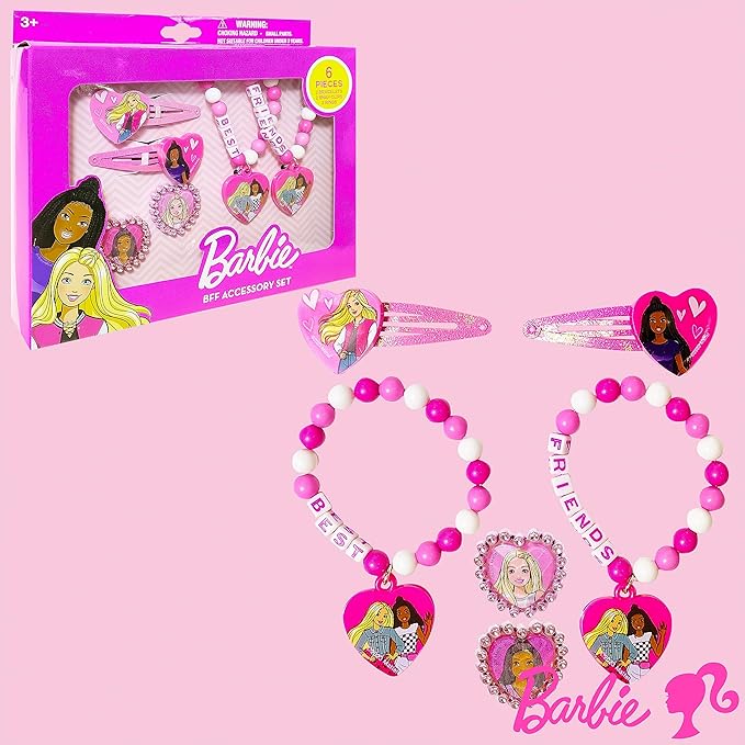 LUV HER Barbie Accessories for Girls 6 Piece Toy Jewelry Box Set with 2 Rings, 2 Bead Bracelets, and Snap Hair Clips Ages 3+