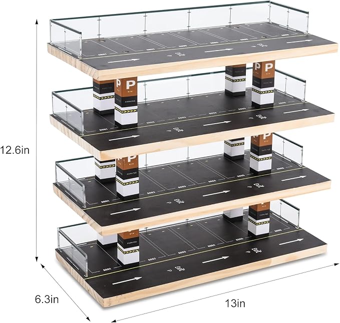Display Case for Hot Wheels & Matchbox, 1/64 Scale Diecast Toy Car Storage, Parking Garage Diorama - Freestanding Storage with 4 Levels 24 Spots Maximum 40 Cars