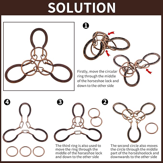 Brain Teaser Puzzles - Metal Horseshoe Cast Puzzle Game Toy Unlock Interlock Puzzles Box Mind IQ Logic Test Disentanglement Games Toys for Adults Office Supplies WP140D