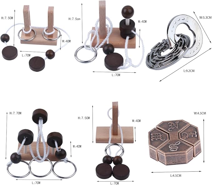 Wooden and Metal 3D Unlock Interlock Assorted Brain Teasers Puzzles,IQ Logic Training Family Game Party Favor Coffee Table Time Unlock Interlock Mind Puzzles Box(6Pcs)