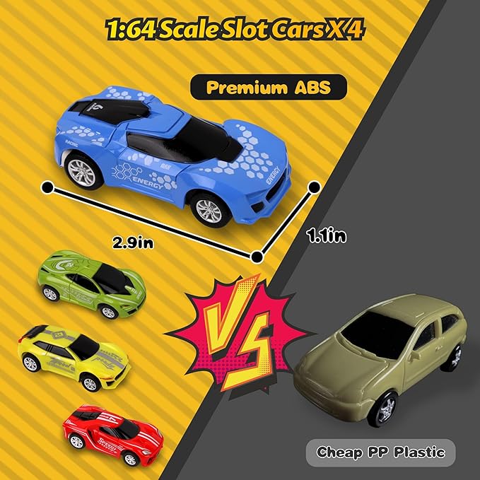 23 FT Powered Electric Race Track Set with Loop, Turns and Crossover - Includes 4 Slot Cars - Toys & Gifts for Boys Age 4-8