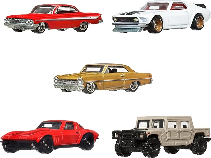 Hot Wheels Cars, Premium Fast & Furious 1:64 Scale 5-Pack Die-Cast Toy Cars for Collectors, HKF07