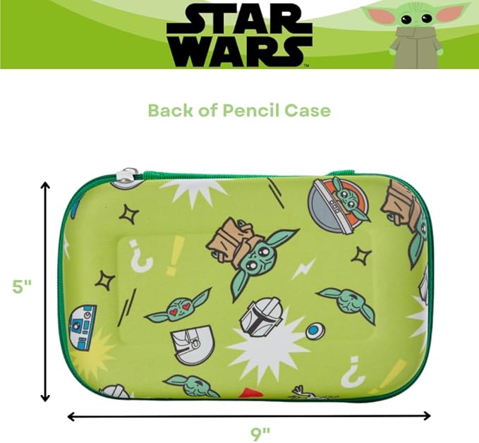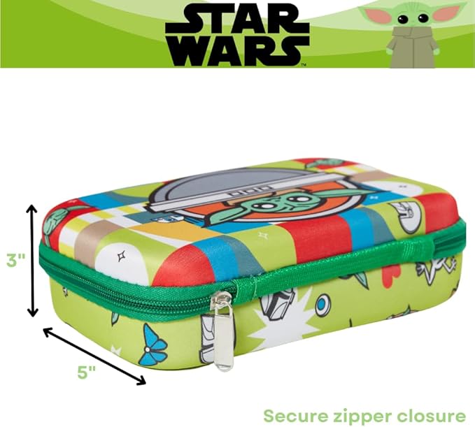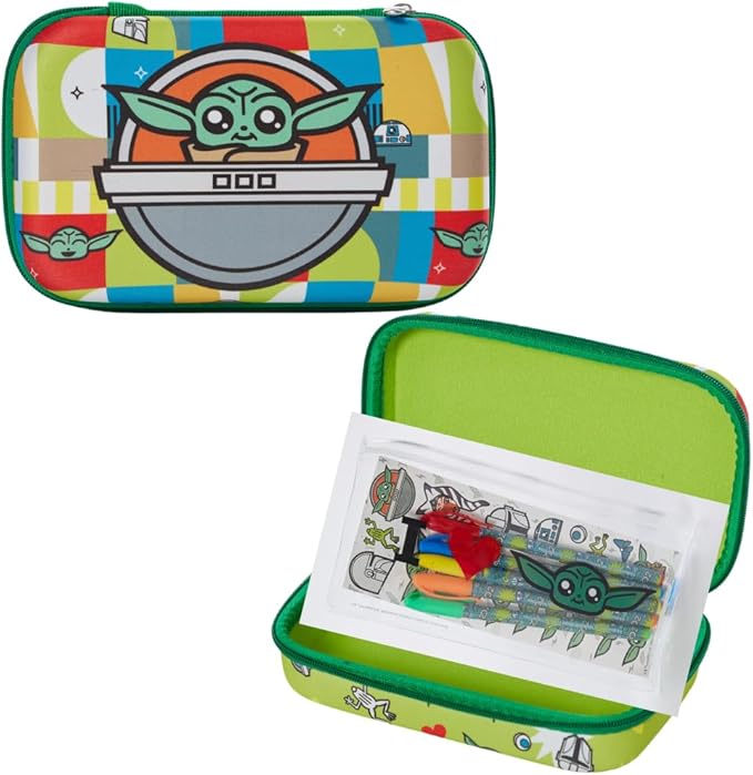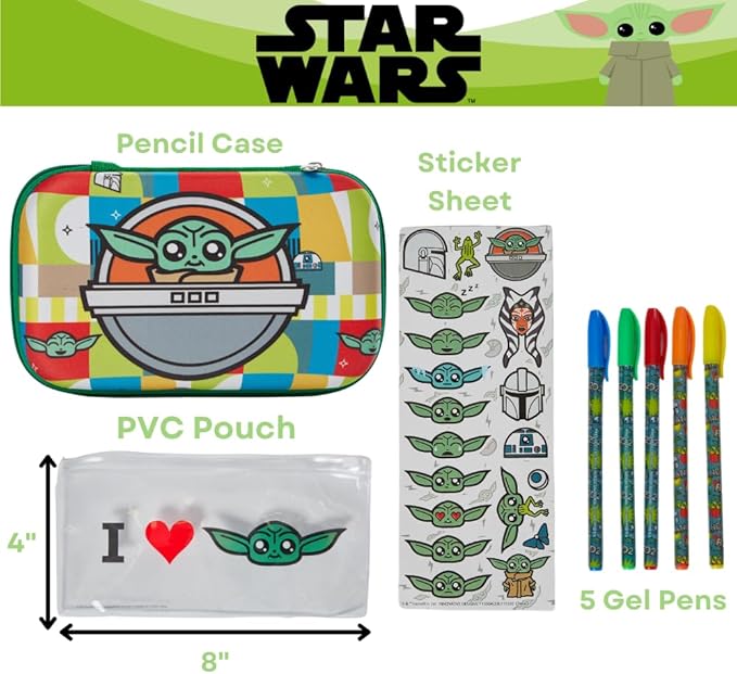 Innovative Designs Star Wars Baby Yoda Mandalorian Pencil Case Set with Stickers and Gel Pens for Kids, Molded with Zip Closure, Green