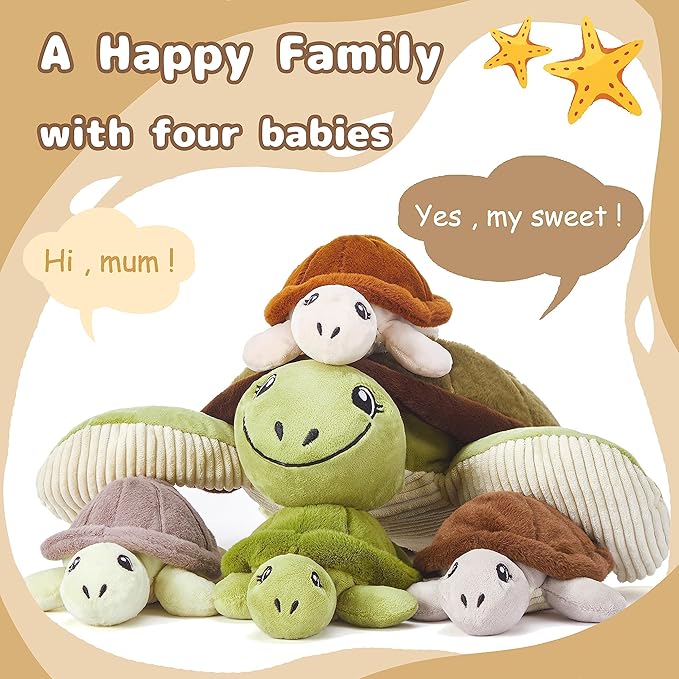 IKASA Mommy Sea Turtle Stuffed Animal Mom and Baby Plush Toy, Cute 15" Soft Small Mama Family Set with Little Babies,Gifts for Kid (Sea Turtle)