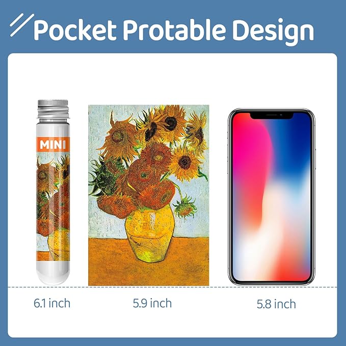 150 Puzzles Mini Jigsaw for Adults & Kids, 6 x 4 Small Capsule Tube Sets - Starry Night Mona Lisa Sunflower Pack