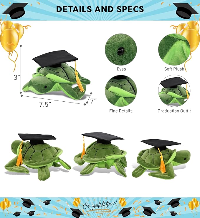 About This PERSONALIZATION, CUSTOMIZATION, AND ADD-ON OPTIONS - Super Soft Sea Turtle Graduation Plush comes customized with black graduation cap... Read more