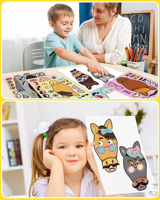 24 Pcs Make Your Own Horse Sticker Sheets for Kids with Horse Face Stickers for Kids Crafts Activities Gift Bag Stuffers for Birthday Party Favors Supplies