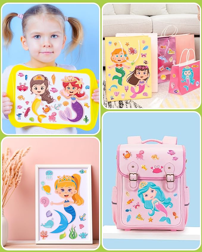 24 Pcs Make Your Own Mermaid Sticker Sheets for Kids with Mermaid Face Stickers for Toddlers Crafts Activities Gift Bag Stuffers Birthday Party Favors for Kids