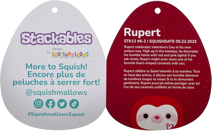Squishmallows Stackables Original 12-Inch Rupert Red Sloth with Heart Embroidery - Ultrasoft Official Jazwares Plush