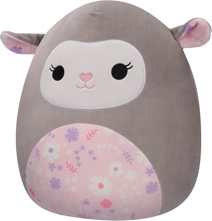 Squishmallows Original 12-Inch Elea Grey Lamb with Pink Floral Belly - Official Jazwares Plush