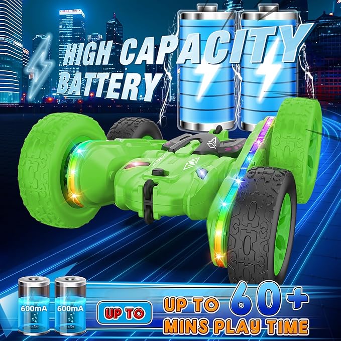 Remote Control Car,RC Cars with sides light strip and Headlights,Double Sided 360 Flips Rotating RC Stunt Car,2.4Ghz All Terrain Toys for Ages 4-6 Kids Toy for Boys Girls Birthday Gift(Green)