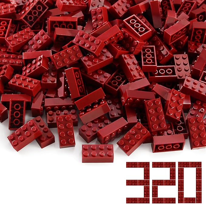 Feleph 2x4 Bricks Dark Red 320 Pieces Parts Classic Building kit Creative Play Set Basic Blocks Toy Accessories Compatible with 3001 Major Brands