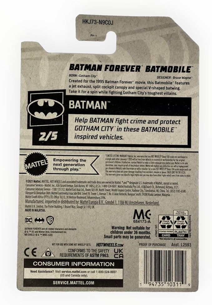 Hot Wheels Batman Forever Batmobile, Batman 2/5 [Gray] 55/250