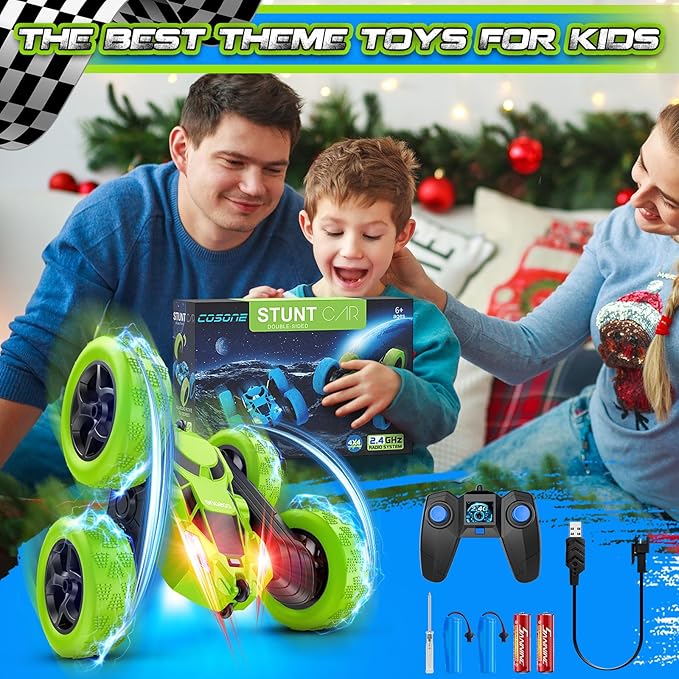 Remote Control Car - RC Car Toys for Boys - 4WD 2.4Ghz Double Sided 360° Rotating RC Cars, Birthday Gifts for Kids Age 6 7 8-12 for Boys and Girls- Green