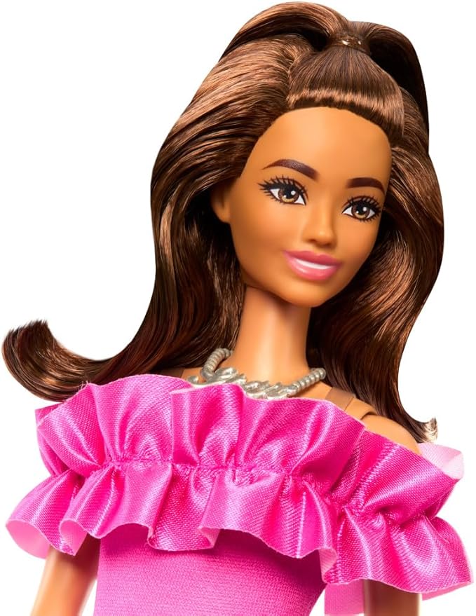 Barbie Fashionistas Doll #217 with Brown Wavy Hair Half-Up Half-Down & Pink Dress, 65th Anniversary Collectible Toy