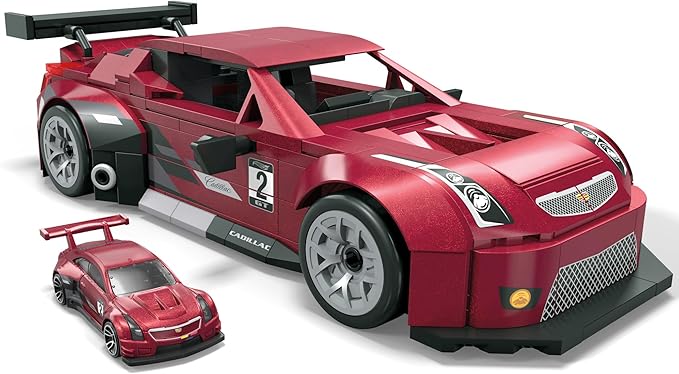 MEGA Hot Wheels Collectible Car Building Toy, Cadillac ATS-V R with 319 Pieces and Die-Cast Model, Build & Display Set for Collectors, Red
