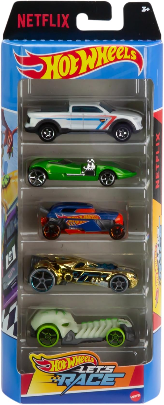 Hot Wheels Toy Cars & Trucks 5-Pack, Set of 5 Die-Cast Vehicles from The Animated Netflix Series Let’s Race!