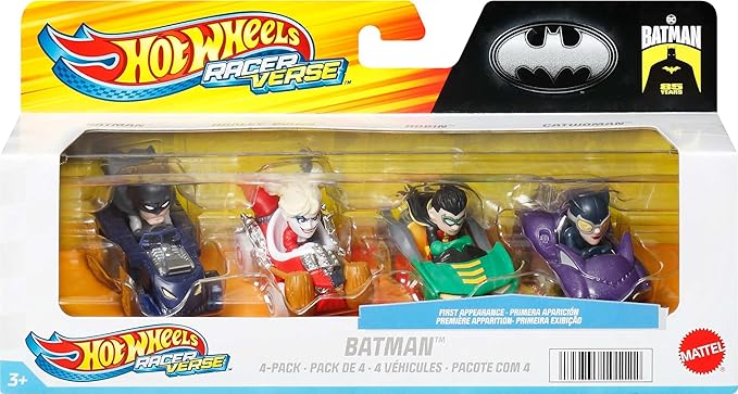 Hot Wheels RacerVerse, Set of 4 Die-Cast 1:64 Scale Toy Cars Optimized for Driving on Hot Wheels Tracks with Pop Culture Characters as Drivers