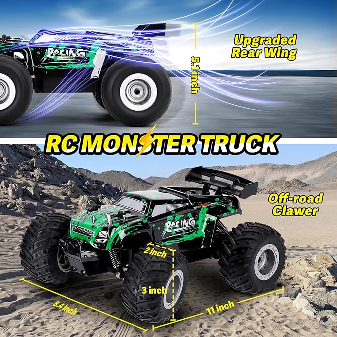1:18 Remote Control Car for Boys Age 4-7 8-12, 20Mph All Terrian Remote Control Monster Truck with Colorful Bodylight, Headlight, High Torque Motor, Truck Toy for Boy Age 4-12 Birthday Gift