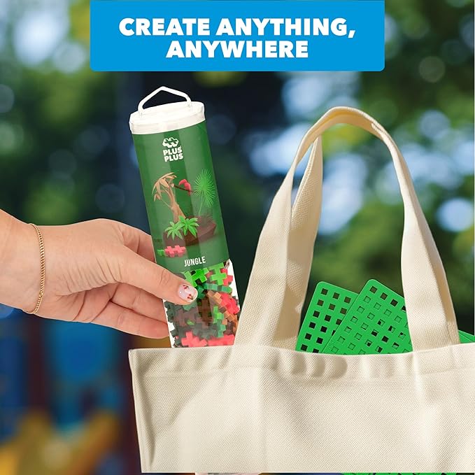 PLUS PLUS 240 Piece Interlocking Building Blocks for Kids, Open Ended Connecting Toys, STEM Bin Mini Manipulatives - Jungle Mix Play Tube & Baseplate