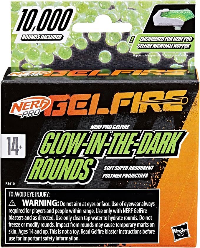 Nerf Pro Gelfire Rounds, 10,000 Glow in The Dark Gelfire Rounds, for Nerf Pro Gelfire Blasters, Outdoor Games, Ages 14 & Up