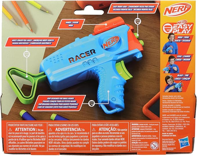 NERF Elite Junior Racer Easy Play Dart Blaster, 4 Nerf Elite Darts, Nerf Blaster Outdoor Toys, for Kids, Ages 6+